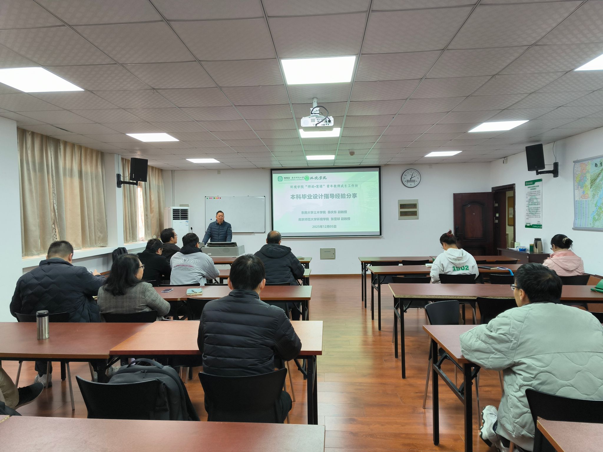 2025年12月5日下午,环境学院“师道·慧绿”青年教师成长工作坊在环境楼E202会议室成功举办本科毕业设计指导经验分享专题活动。本次活动特邀东南大学土木工程学院秦庆东副教授与南京师范大学环境学院张显球副教授担任主讲嘉宾,环境工程系主任谢文明、副系主任左淦丞、许晨敏、孟晗及部分教师代表参会,活动由谢文明主任主持。